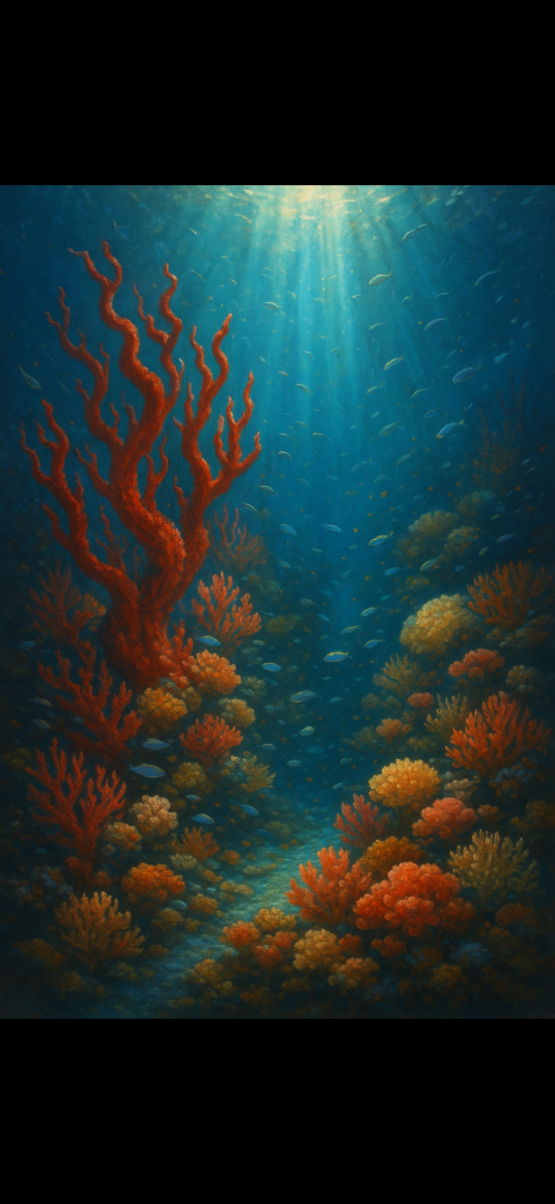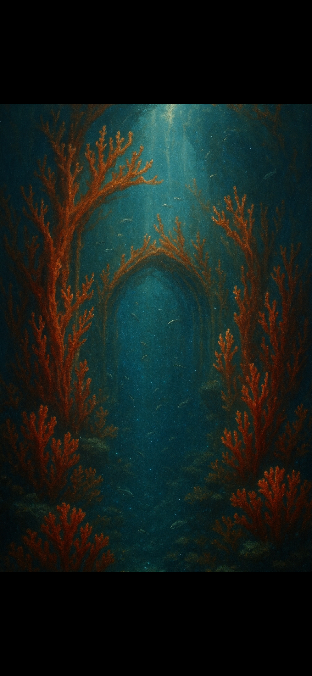 Dalgaların altından, mercanların görünmez şehri, minik poliplerin ağızlarıyla sessiz bir ilahi mırıldanır; Medusa’nın kanından yapılmış kırmızı taş çiçekleri, suyun ritmine uygun bir dans tutturur.