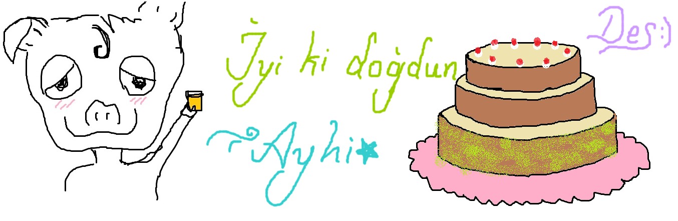 Sana ÇOK UĞRAŞARAK, KESİNLİKLE KOLAYA KAÇMAYARAK Paint'le pasta yaptım Ayhi-san. Gönül isterdi ki ellerimle yapayım ama mutfağa sadece yemek yemek için girdiğimden, pasta yapmam bizim evde yaşanabilirlik açısından iyi olmazdı bence. Şimdi sana pasta yapacağım derken evsiz de kalmayayım, değil mi?:))))))))))9