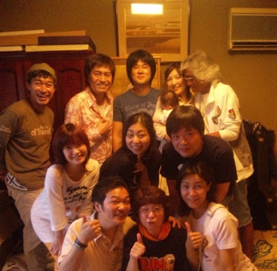 Soldan Sağa Üst Sıra: Cho (Brook), Hiroaki Hirata (Sanji), Eiichiro Oda, Anaknya Oda, Kazuki Yao (Franky)