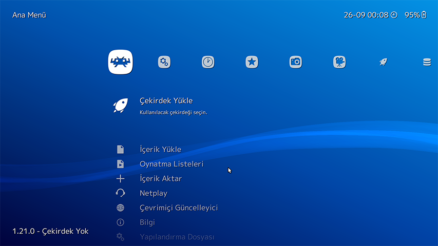 Kontrolcü ile kullanmak için en iyi arayüz ise bence xmb. Ayarlar > Kullanıcı Arayüzü > Menü > xmb yolunu takip ederek bu arayüz değişikliğini yapabilirsiniz. Ama kaydetmesi için yapılandırma dosyasını kaydetmeniz ya da en basitinden ana menüdeki çıkış butonunu kullanarak gir çık yapmak gerekiyor. Tekrar girdiğinizde sizi bu sefer PS3 menüsünden ilham alınmış şöyle bir arayüz karşılaycak.